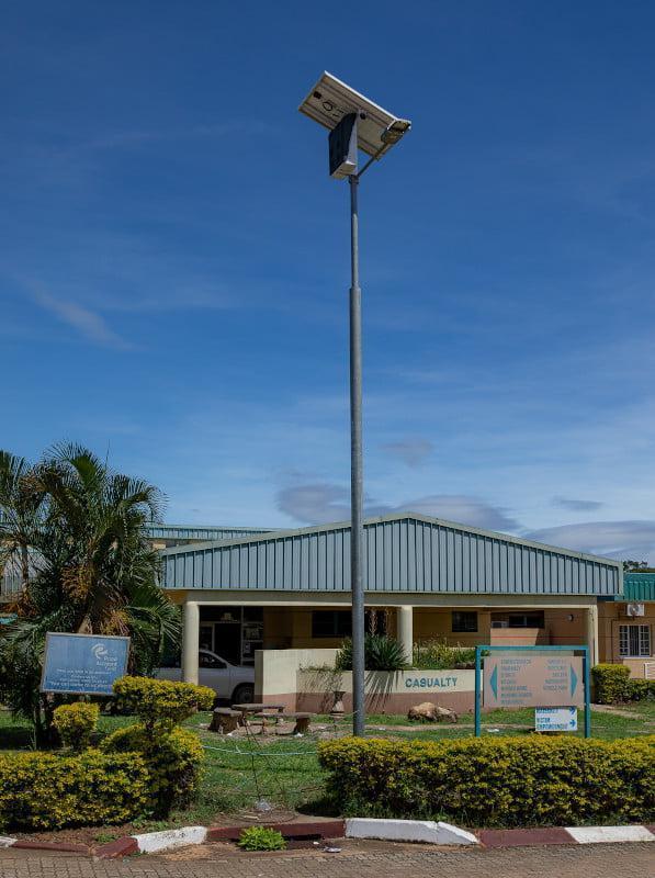 The lighting solution consisted of BEKA SOLAR units and the BEKA SERIES 30 LED bulkheads for general area lighting. The BEKA SOLAR units were supplied with LEDLUME-MINI LED streetlights to illuminate the roads on the hospital grounds. Area lighting in front of the staff housing was provided with BEKA SOLAR units supplied with decorative ZELA LED post tops. A solar lighting solution was chosen in order to provide security for the patients, whilst not being negatively impacted by load shedding. Furthermore, energy savings were an added benefit.