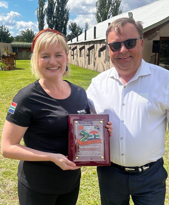 Martin’s Group CEO Robert Nogaj presented Martin Africa new General Manager Fran van der Berg with a specially-made plaque commemorating 20 years in Africa.